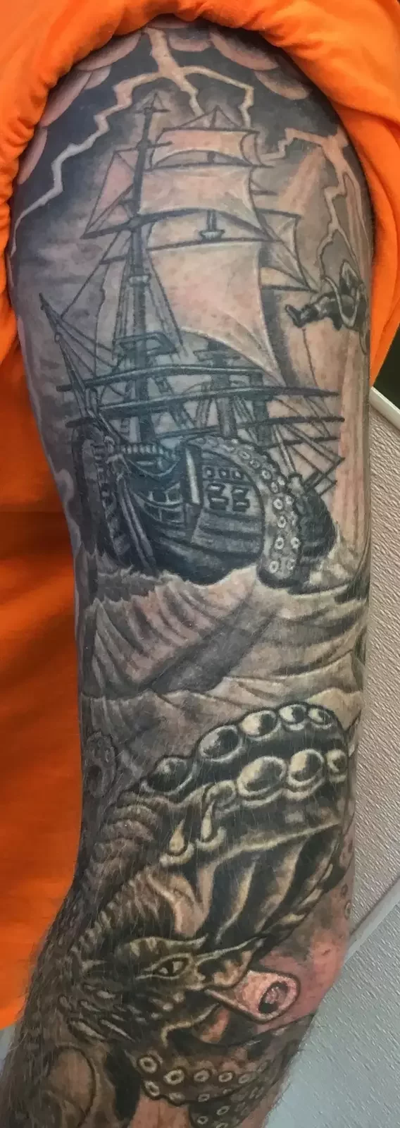 J.D. Crowe at Ancient Art Tattoo in Chesapeake, VA, for 4 1/2 years.